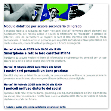 Sulla piattaforma streaming di CUBO nel mese di febbraio 3 moduli didattici di sensibilizzazione importantissimi.